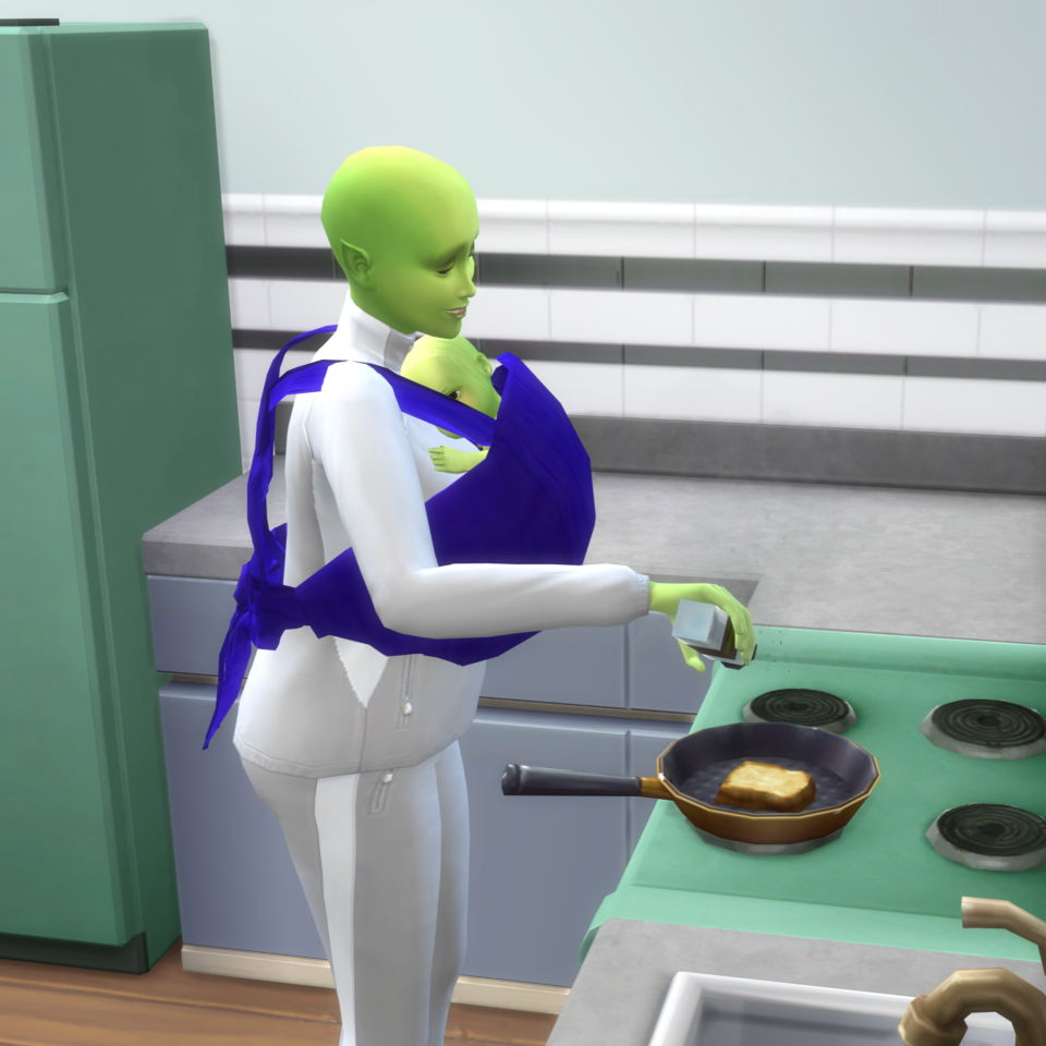KNOWN CONFLICTS: The babywearing interaction does not work if you have CCs from LazyEyeLids and/or lamatisse “Bare_skintones”.