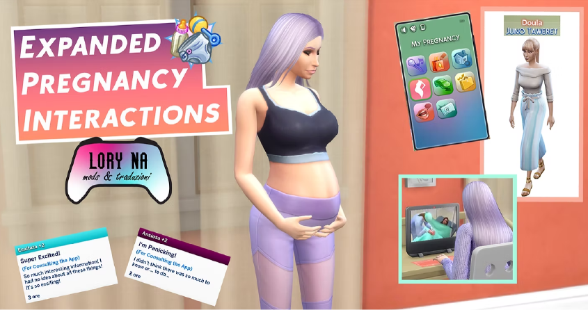 DESCRIPTION: In questa mod sono presenti un’app di monitoraggio di gravidanza, un nuovo Npc, nuove interazioni al computer e la possibilità di scegliere la preferenza di nutrizione per il neonato.