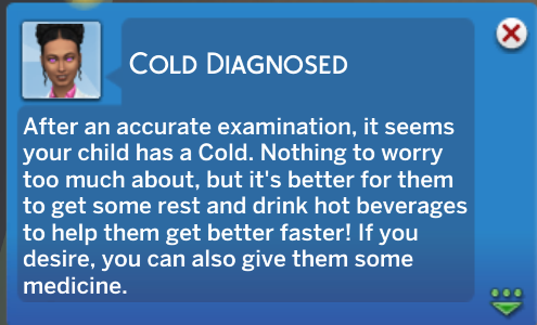 Randomly, Sims from infant to child age may receive a buff indicating that they are unwell.