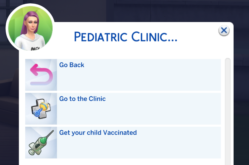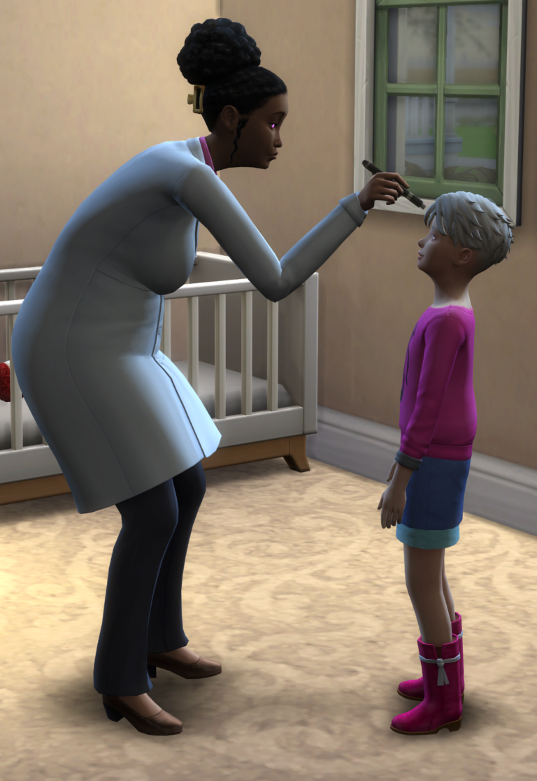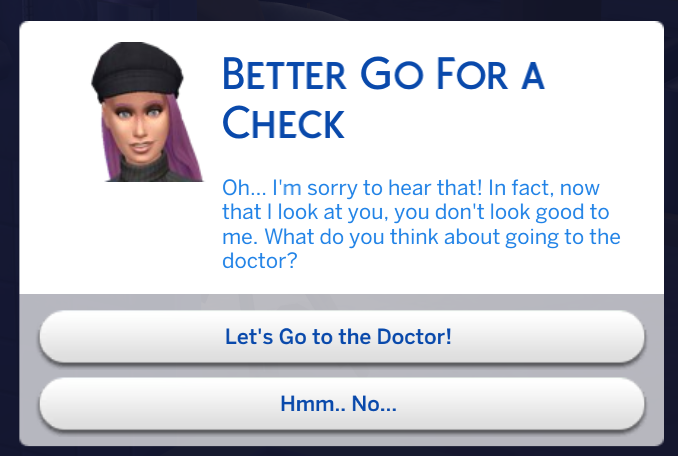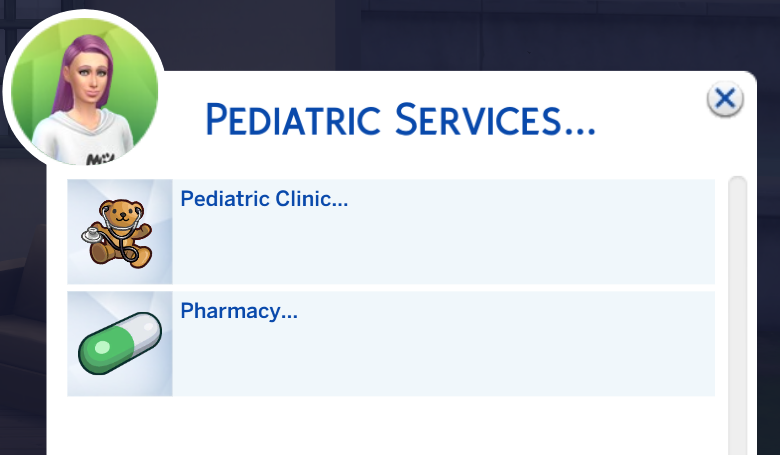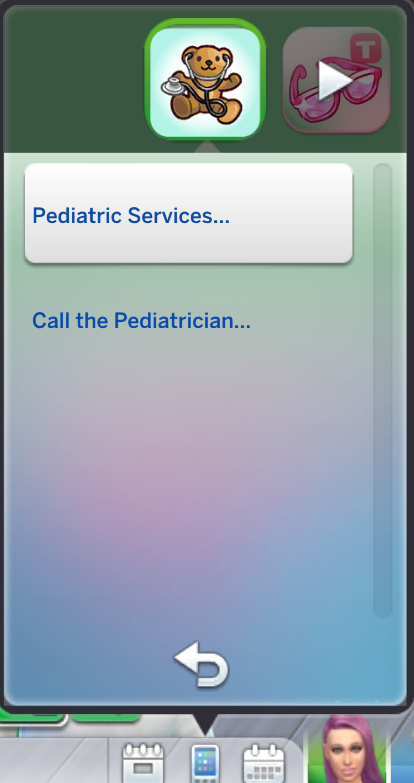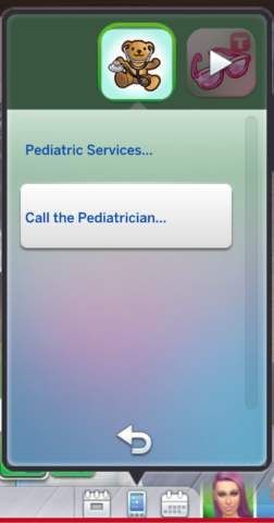 A Sim (teen or older) will be able to use the “My Pediatrician” app to decide whether to call the pediatrician at home or accompany the sick Sim to get a diagnosis.