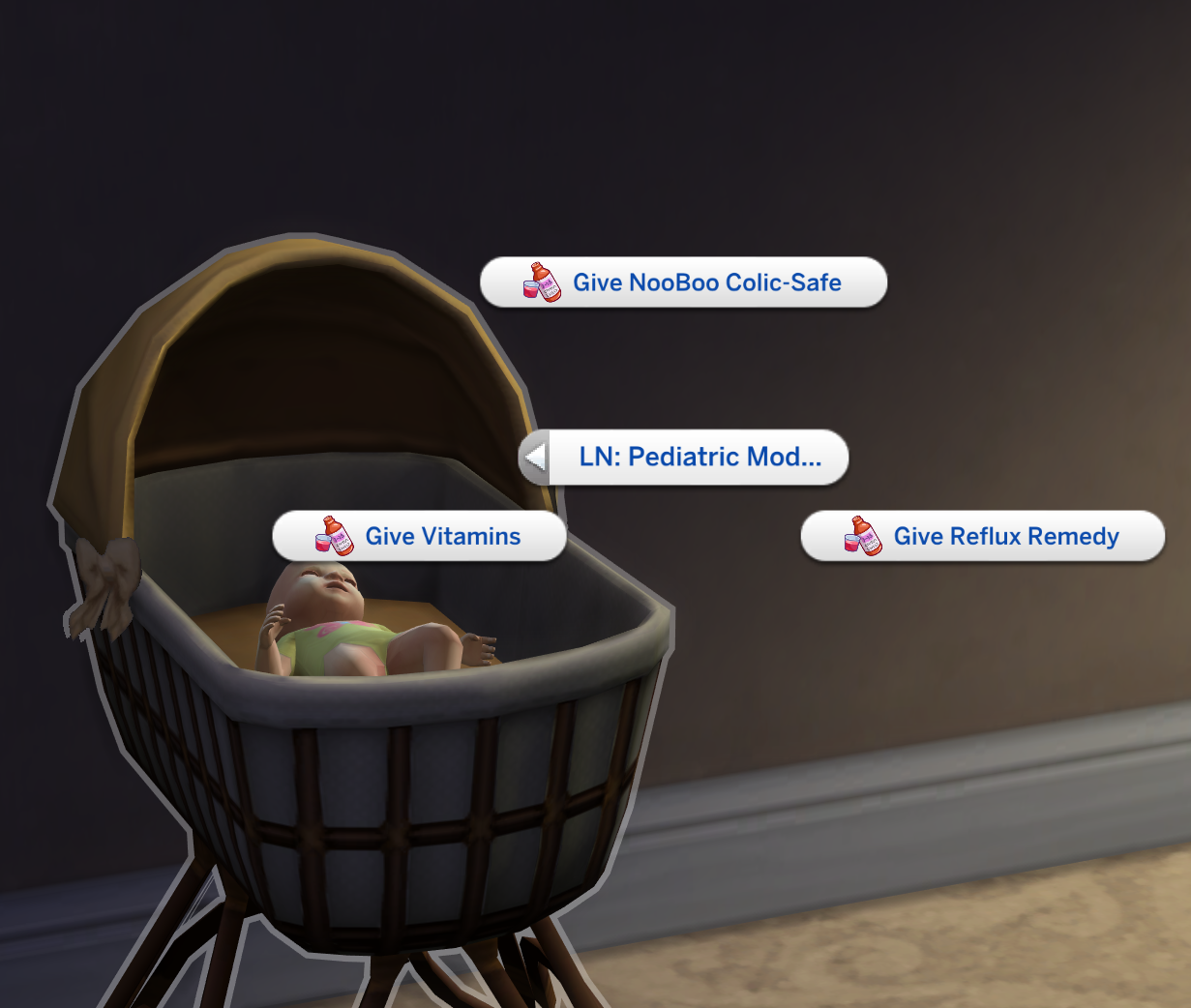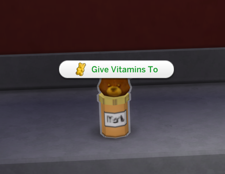 Important: All medicines must remain in the child’s guardian Sim’s inventory! The only exceptions are children’s and toddler vitamins and soothing cream.