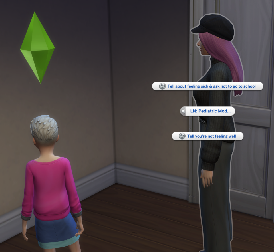 If they’re truly sick (with an undiagnosed illness buff), they can ask to stay home for a day, and their request will obviously be granted. However, if the child reports feeling unwell, the adult Sim will suggest a quick trip to the doctor for a diagnosis. You’re free to choose whether or not to go, but be aware that if a highly contagious disease is diagnosed (chickenpox, rubella, HFMD, and rotavirus), the child will automatically be barred from school until they’re well.