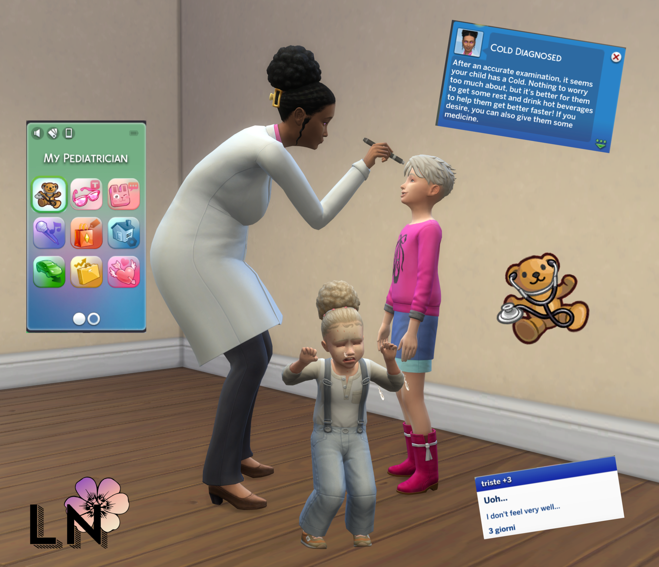 DESCRIPTION: With this mod, children will be able to experience pediatric diseases. In fact, Sims will be able to call a pediatrician at home or go to the clinic (rabbithole) to have their little ones diagnosed.