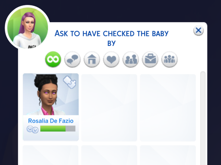 For newborns, however, the process is different: you’ll need to click on the crib and select the pediatrician to have them examined. Your Sim will pick up the little one and show them to the pediatrician.